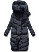 Granatowa długa pikowana zimowa kurtka płaszczyk z kołnierzem