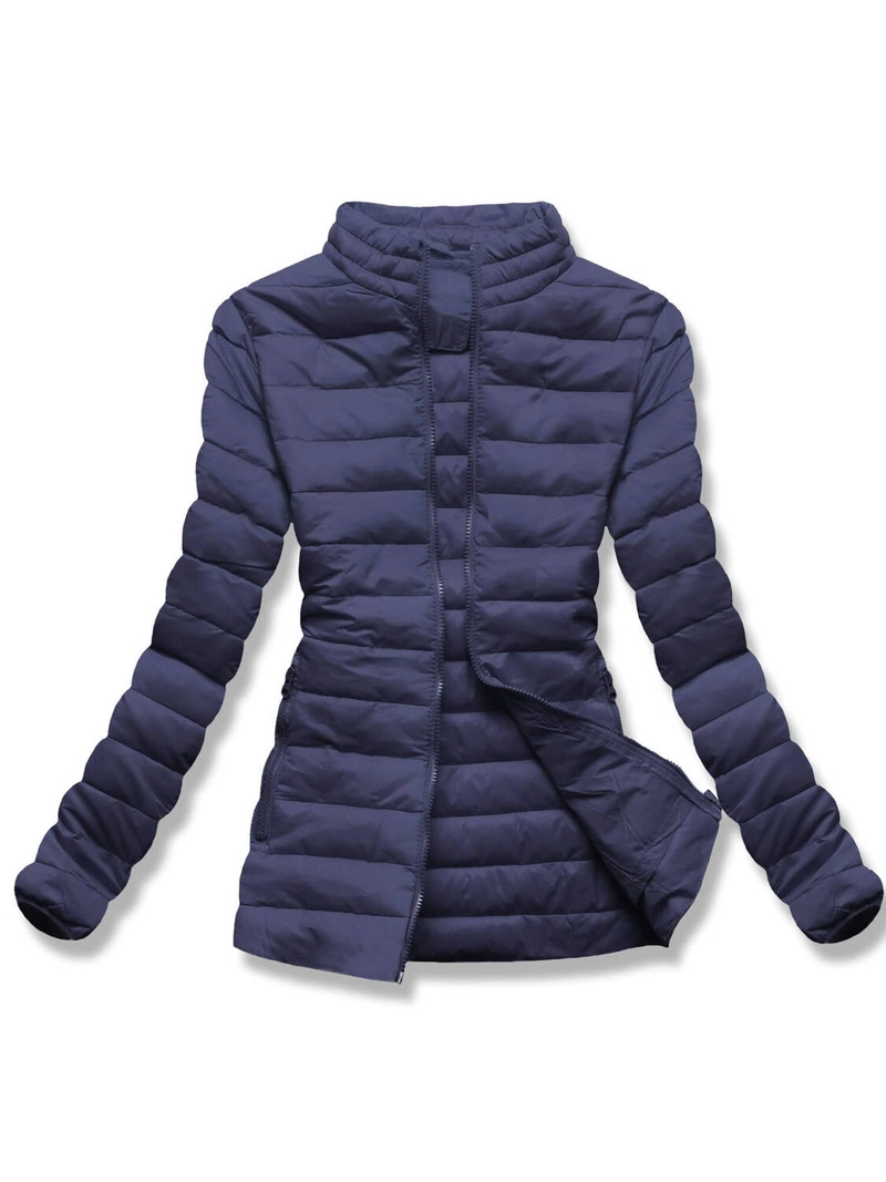 Ciemnoniebieska lekka pikowana kurtka przejściowa ze stójką