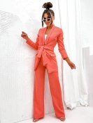 Koralowy elegancki komplet oversizowa marynarka i luźne spodnie