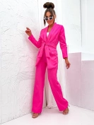 Fuksjowy elegancki komplet oversizowa marynarka i luźne spodnie