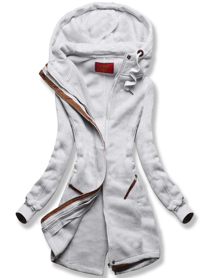 Szara rewelacyjna damska bluza typu long z kapturem