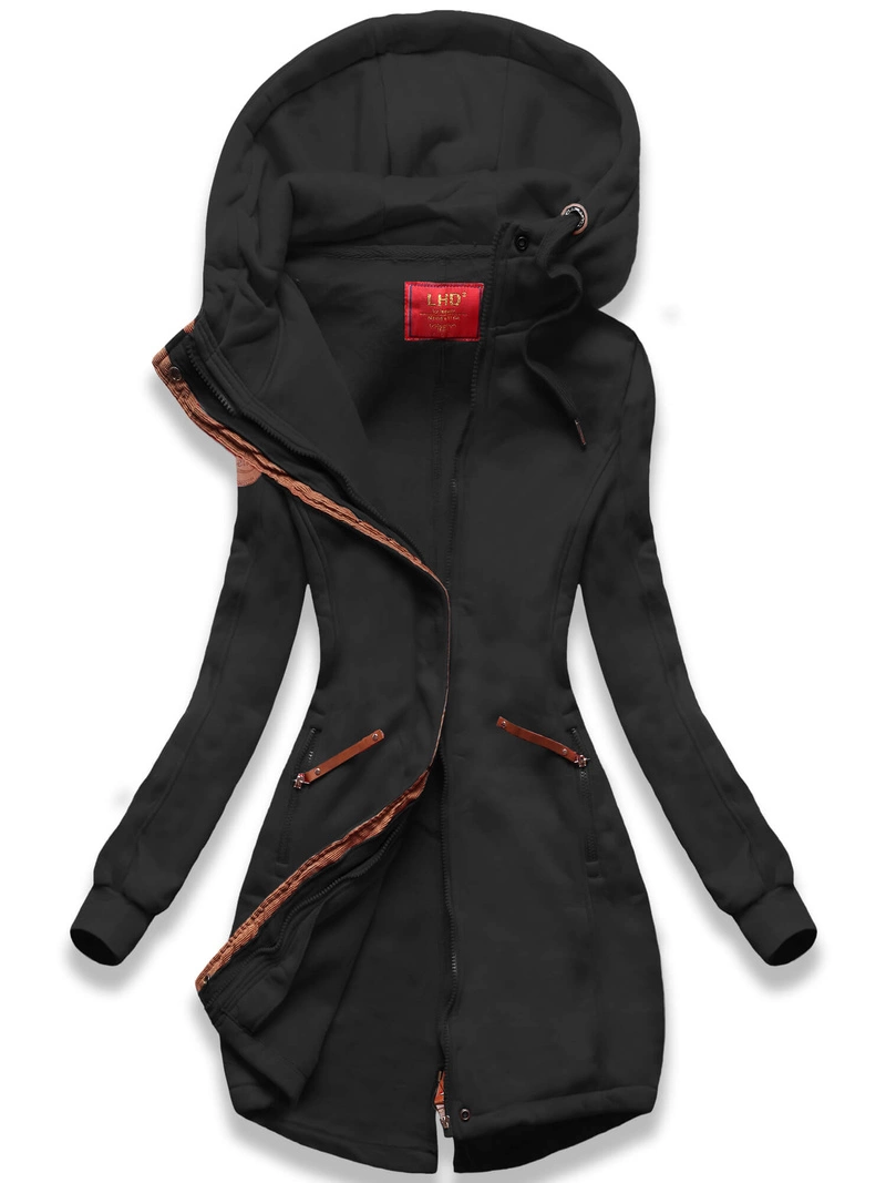 Czarna damska przejściowa kurtka panterka z kapturem