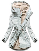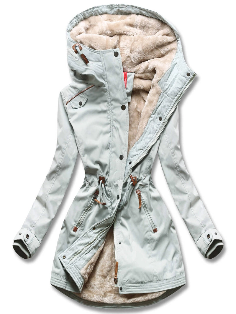 Miętowa ciepła kurtka parka na misiu z kapturem i wstawkami