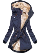Granatowa ciepła kurtka parka na misiu z kapturem i wstawkami
