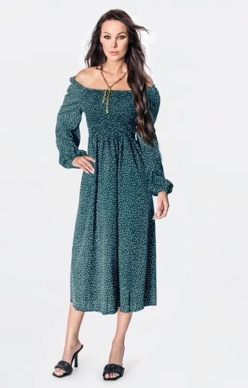 Morska, klasyczna wyszczuplająca, prążkowana sukienka, basic elegance z rękawem 3/4