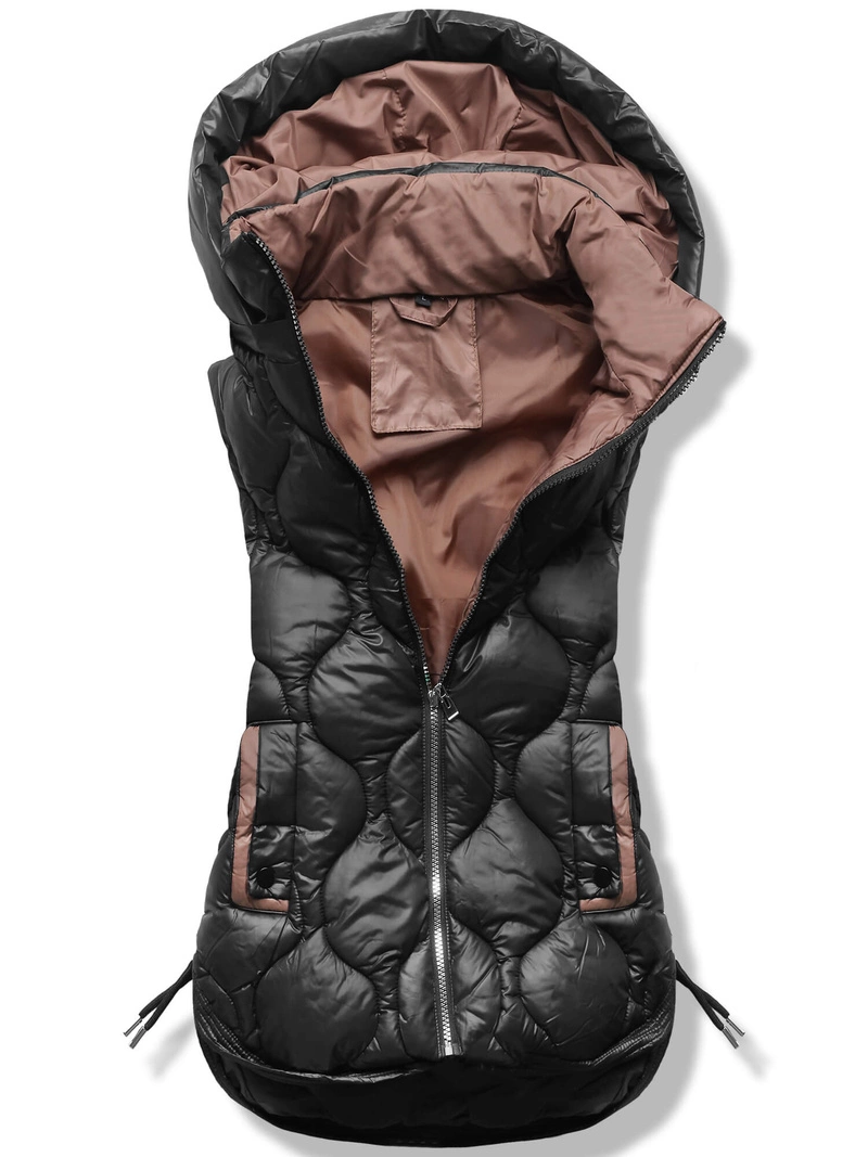 Czarny rewelacyjny pikowany damski bezrękawnik kamizelka z kapturem