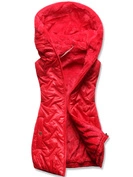 Czerwony pikowany bezrękawnik kamizelka z kapturem stójka