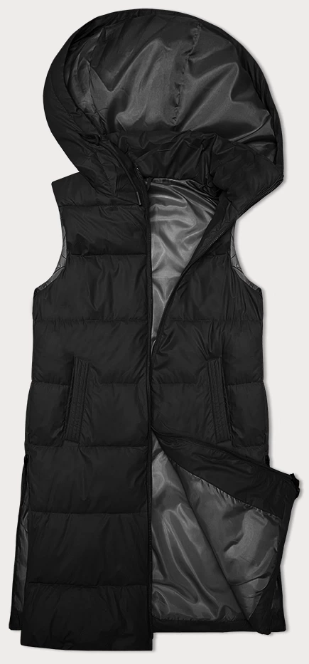 Czarny dwustronny pikowany bezrękawnik z kapturem