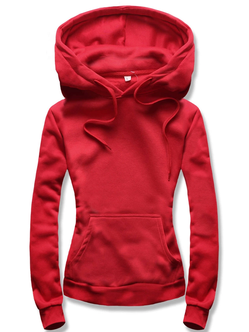 Czerwona damska bluza dresowa z kapturem kangurka