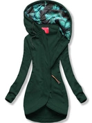 Ciemnozielona zapinana na suwak damska bluza z kwiecistym kapturem