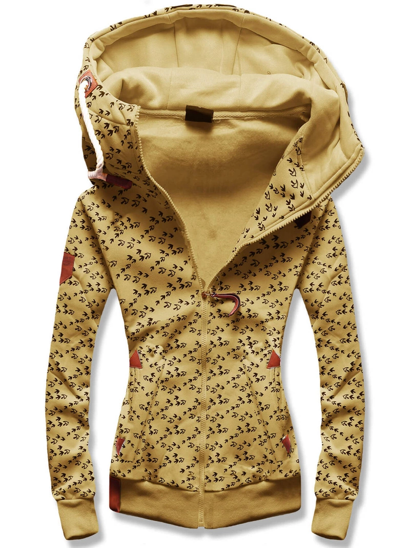 Żółta rozpinana bluza damska z kapturem w jaskółki