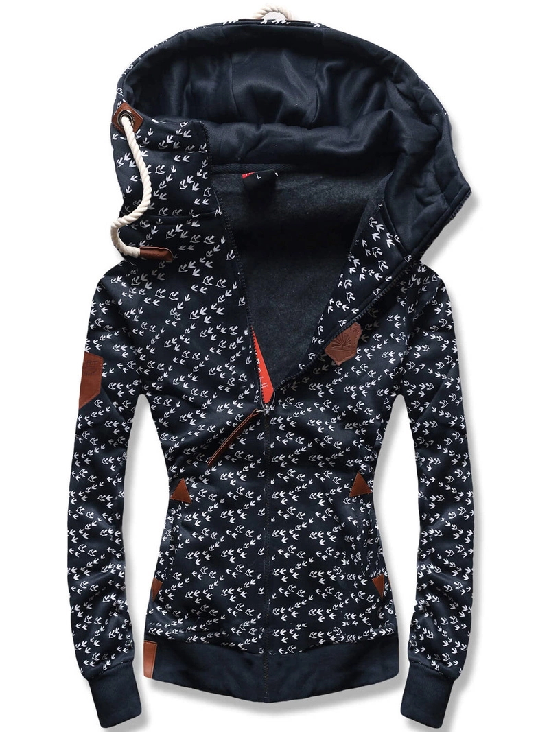 Granatowa rozpinana bluza damska z kapturem w jaskółki