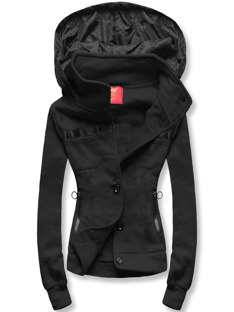 Czarna świetna krótka bluza damska z kapturem zapinana na guziki