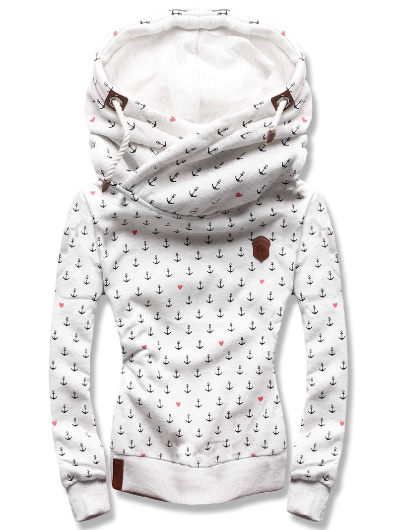 Biała damska rozpinana bluza z kapturem w kotwiczki