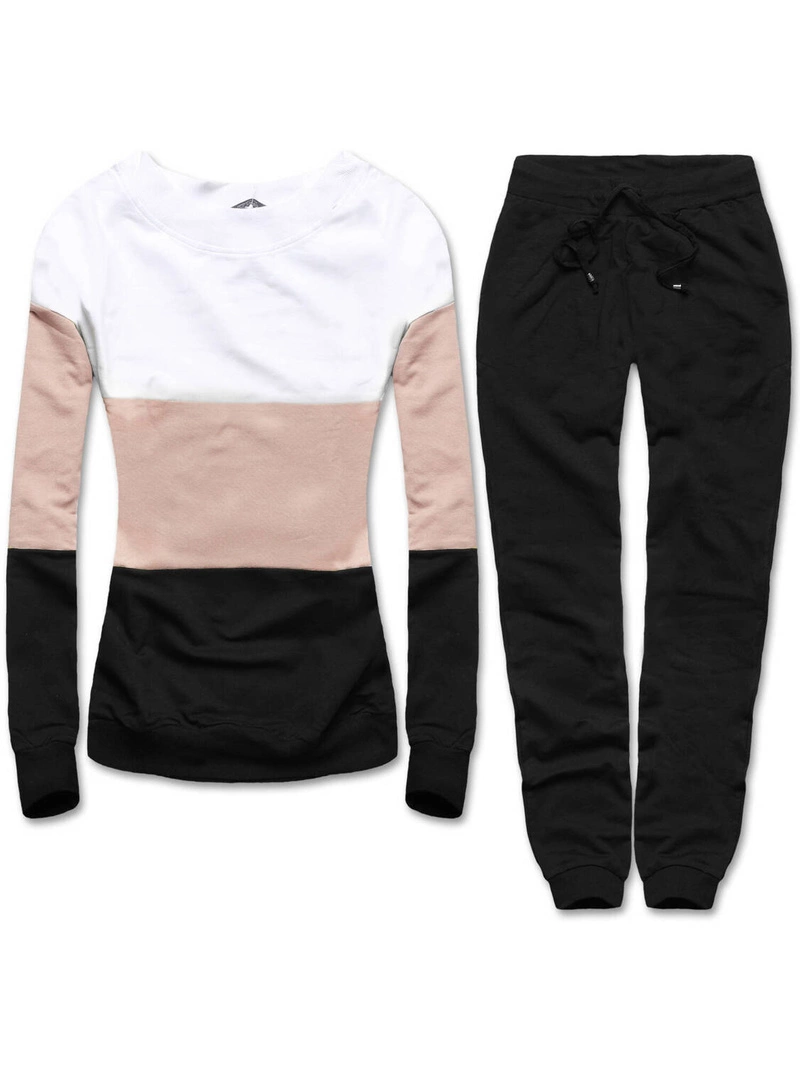Biało beżowy czarny dres fitness i casual basic
