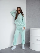 Pistacja welurowy gładki dres damski z kapturem