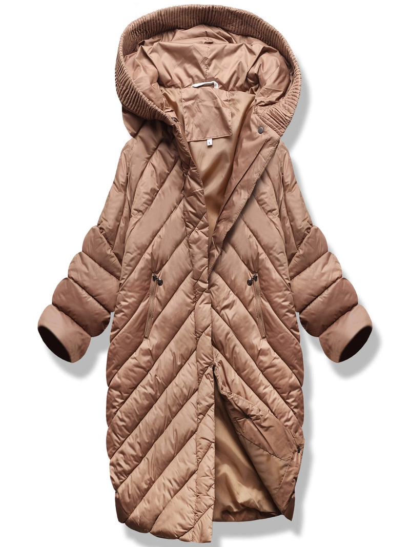 Brązowa damska zimowa kurtka pikowana nietoperz