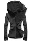 Czarna kurtka płaszcz z łączonych materiałów z wygodnym kapturem i kołnierzem