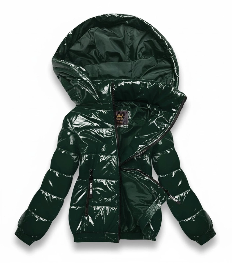 Zielona błyszcząca kurtka ze ściągaczem