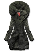 Ciemnozielona genialna długa zimowa damska kurtka z kapitalnym kapturem