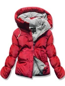 Czerwona kurtka z kapturem modnie pikowana na suwak i zatrzaski