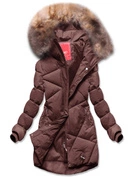 Brązowa zimowa długa taliowana kurtka płaszczyk z kapturem