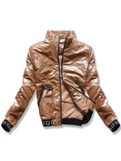 Beżowa krótka damska błyszcząca kurtka z modną stójką