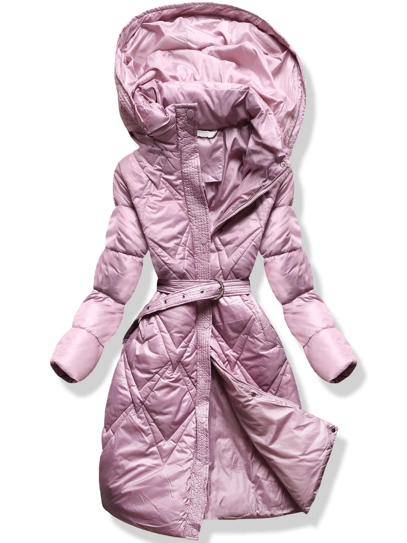 Różowa dwustronna zimowa kurtka damska pikowana w karo