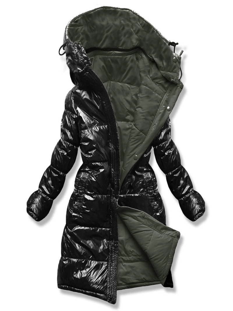 Czarna Khaki dwustronna zimowa kapitalna kurtka damska