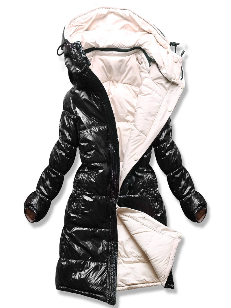 Czarna Ecru dwustronna zimowa kapitalna kurtka damska