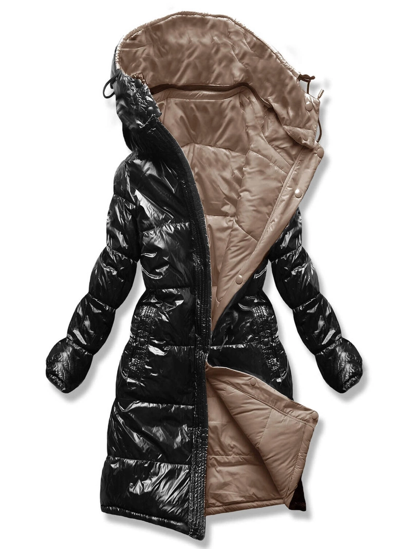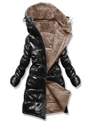 Karmelowa czarna zimowa dwustronna pikowana kurtka płaszczyk parka