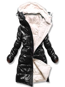 Czarno beżowa błyszcząca kurtka płaszczyk z kapturem
