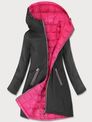 Grafitowo-różowa przejściowa dwustronna damska kurtka z kapturem