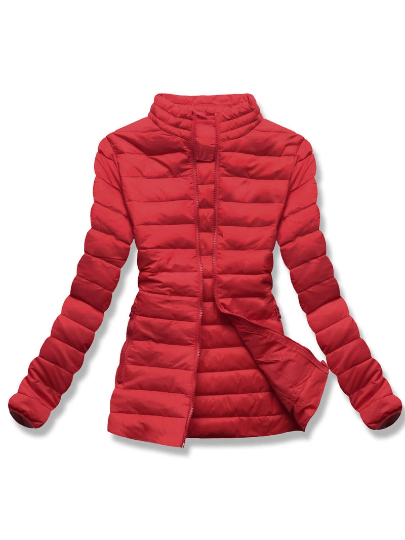 Czerwona lekka pikowana kurtka przejściowa ze stójką