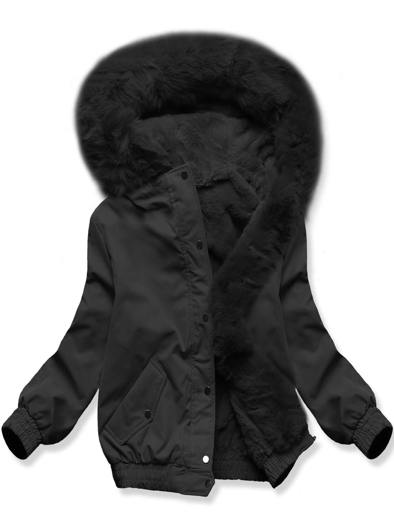 Czarna genialna damska zimowa kurteczka z futerkiem