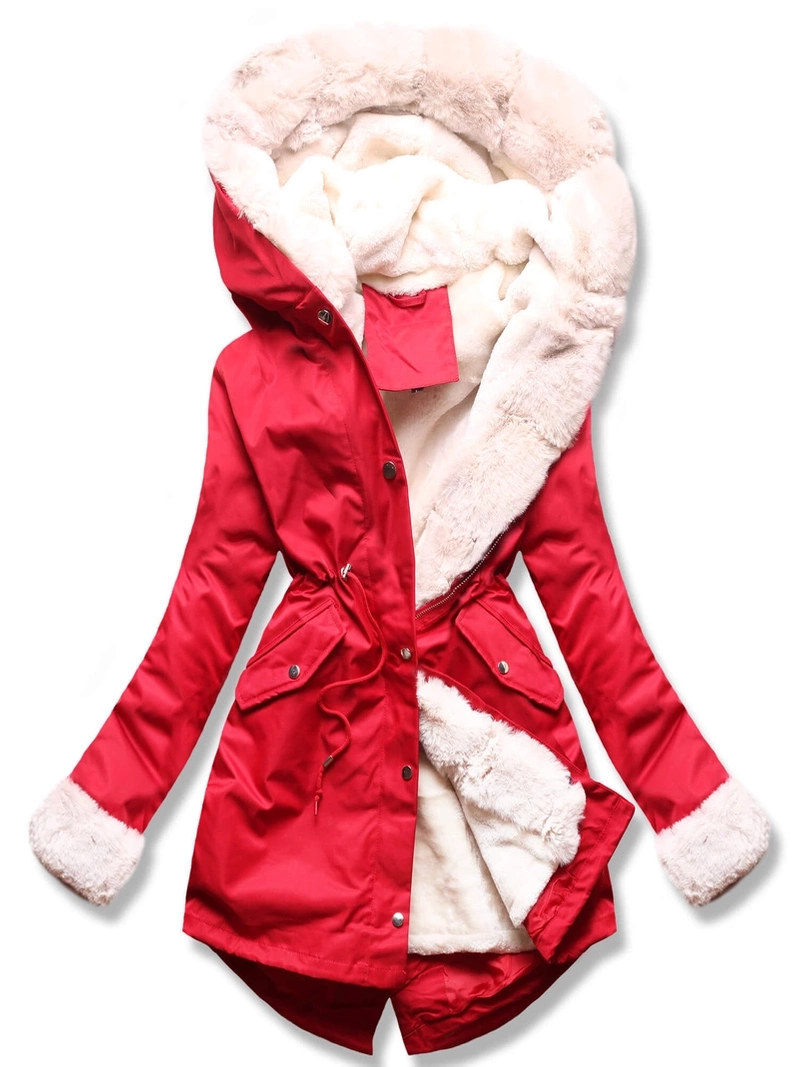 Czerwona ciepła kurtka parka na misiu z kapturem