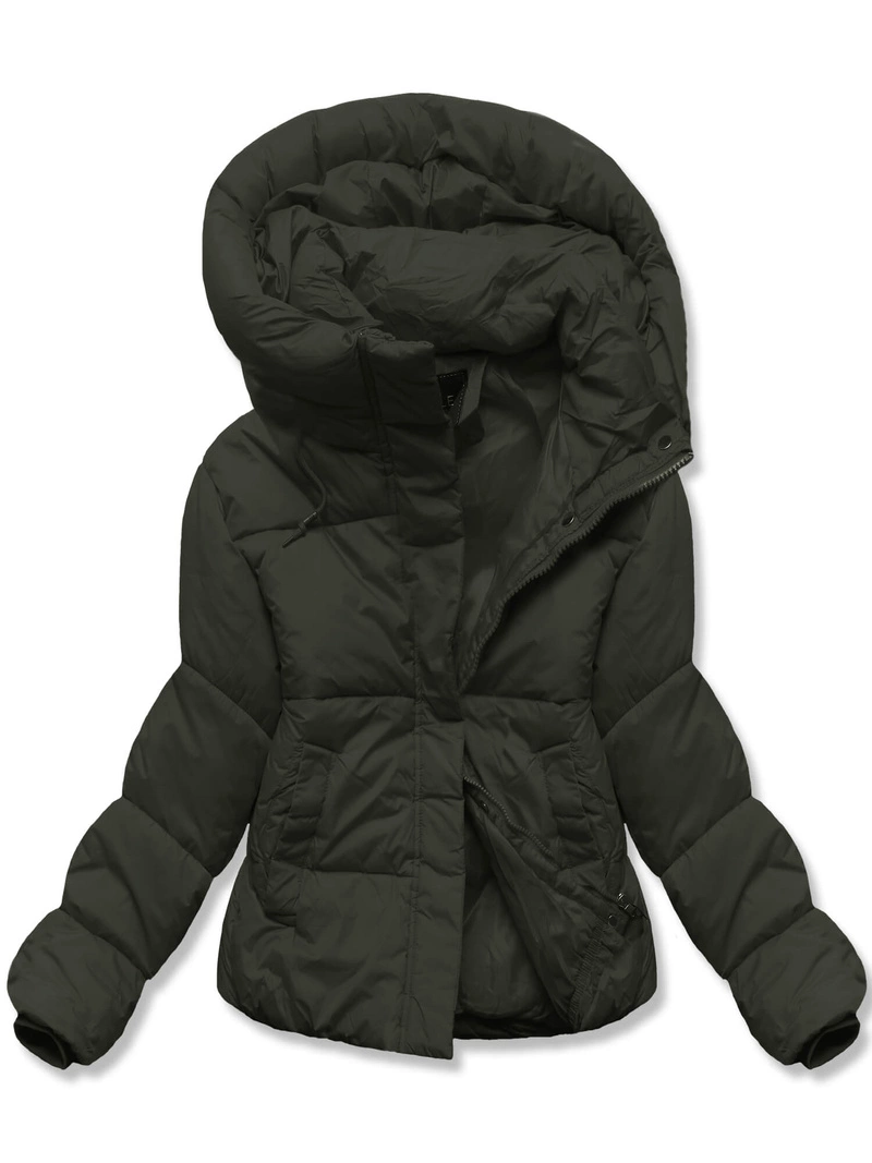 Zielona zimowa ciepła kurtka pikowana z kapturem