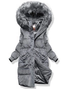 Szara długa ciepła rewelacyjna zimowa kurtka damska płaszczyk z kapturem