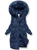 Granatowy długi płaszczyk kurtka zimowa - na ciepłym misiu z kołnierzem