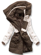 Brązowa ecru kapitalna kurtka z łączonych materiałów
