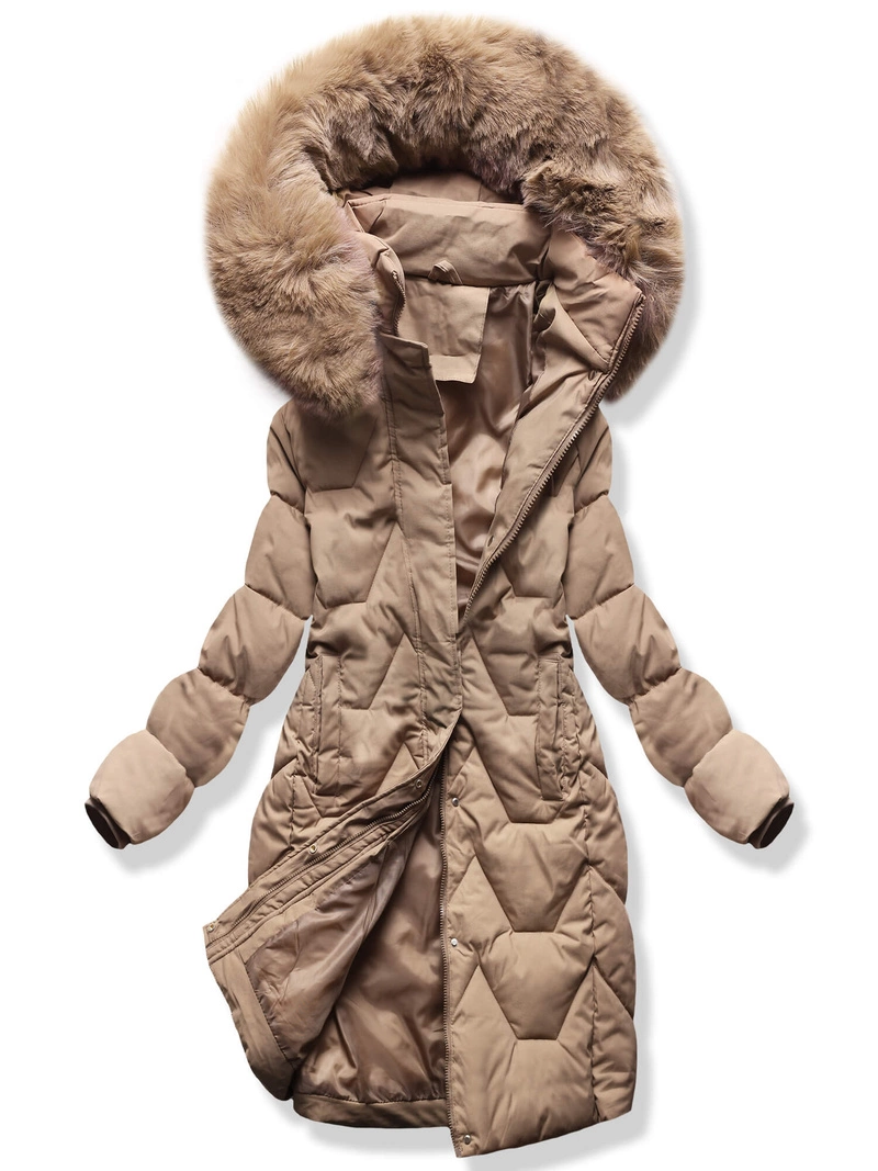 Jasnobrązowa rewelacyjna damska zimowa kurtka z kapturem netmoda