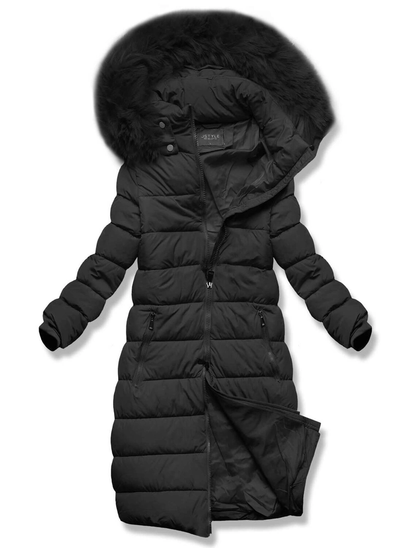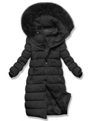 Czarna zimowa długa kurtka płaszczyk z kapturem
