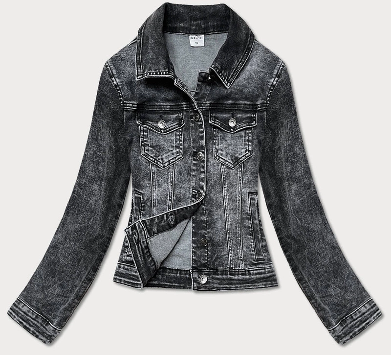 Krótka damska kurtka jeansowa czarna (pop5989-k)