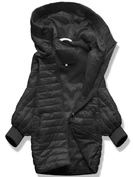 Czarna krótka zimowa kurtka damska bombka z kapturem