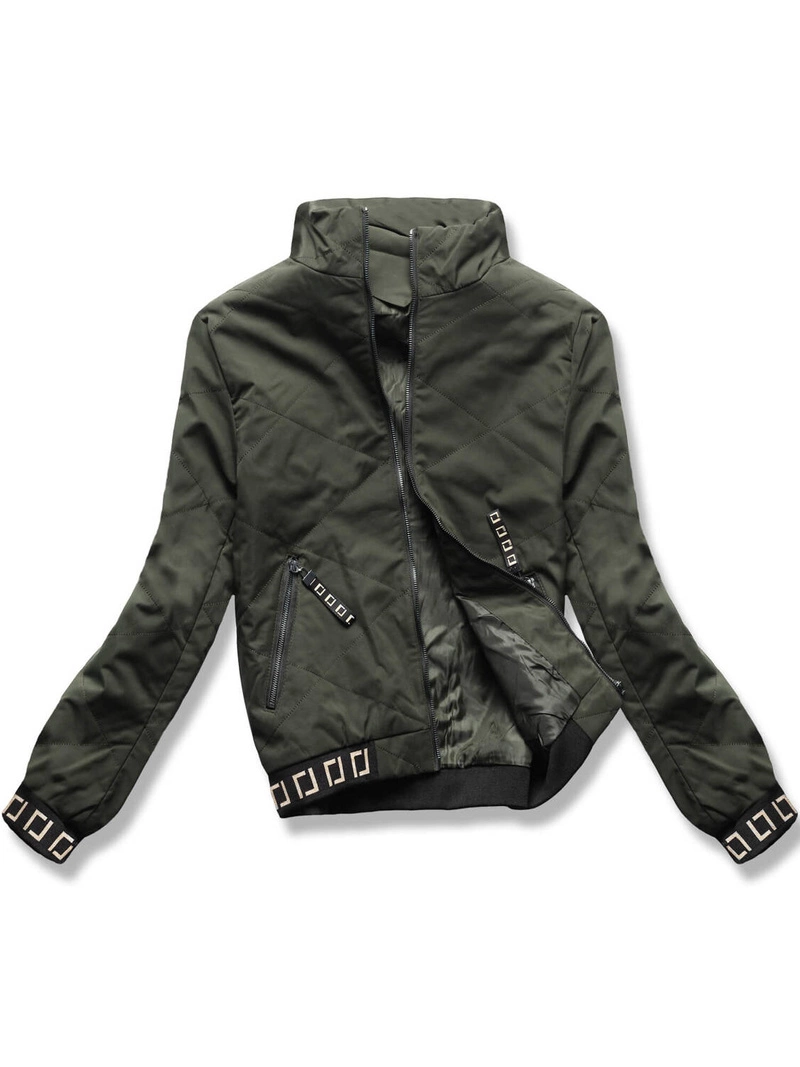 Oliwkowa przejściowa kapitalna kurtka ze ściągaczem