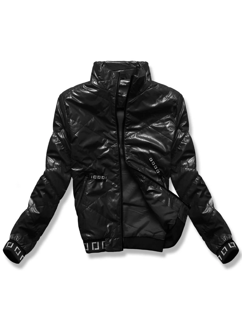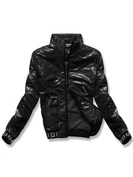 Czarna krótka damska błyszcząca kurtka z modną stójką