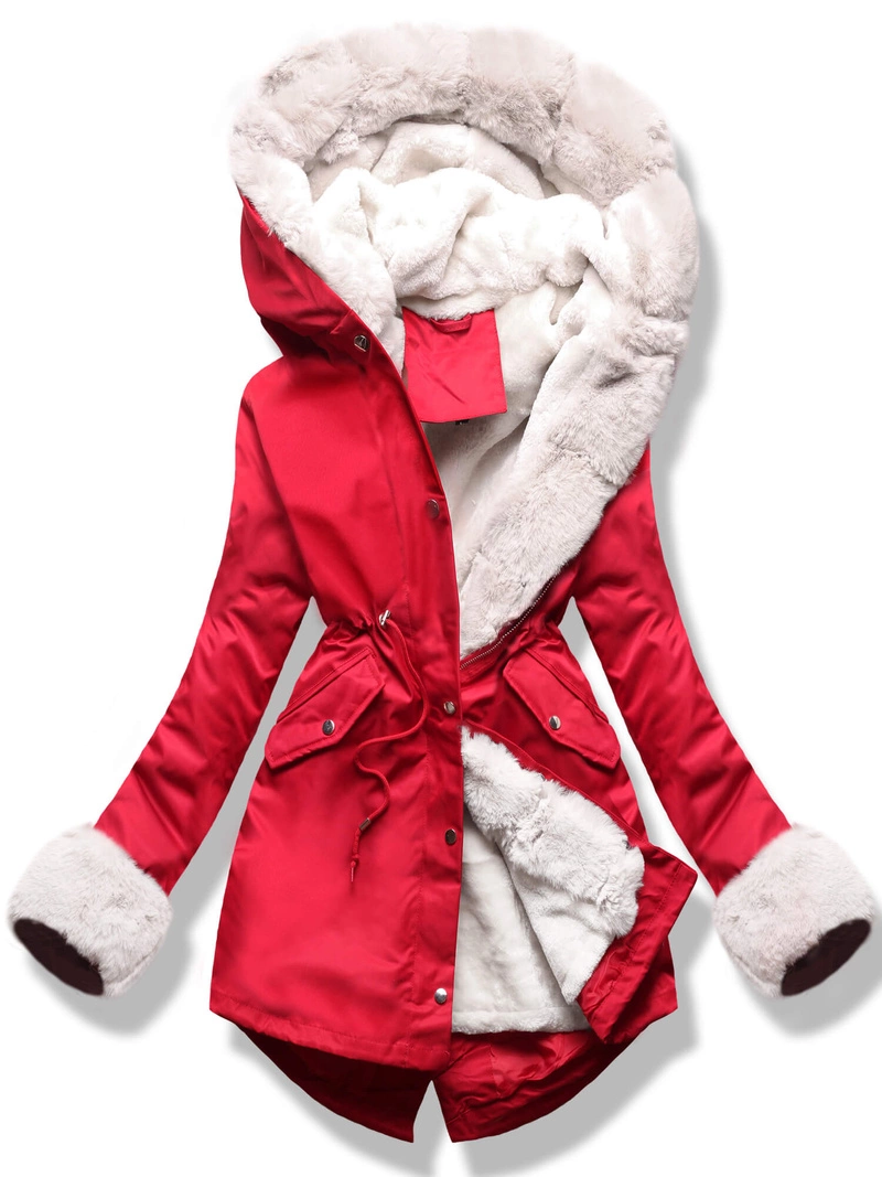 Czerwona ciepła kurtka parka na misiu z kapturem