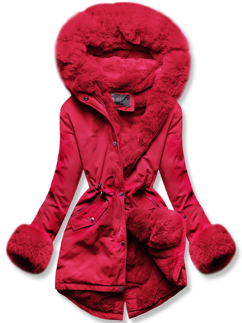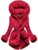 Czerwona zimowa kurtka parka futerko