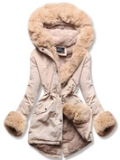 Carmelowo beżowa przejściowa kurtka parka z kapturem