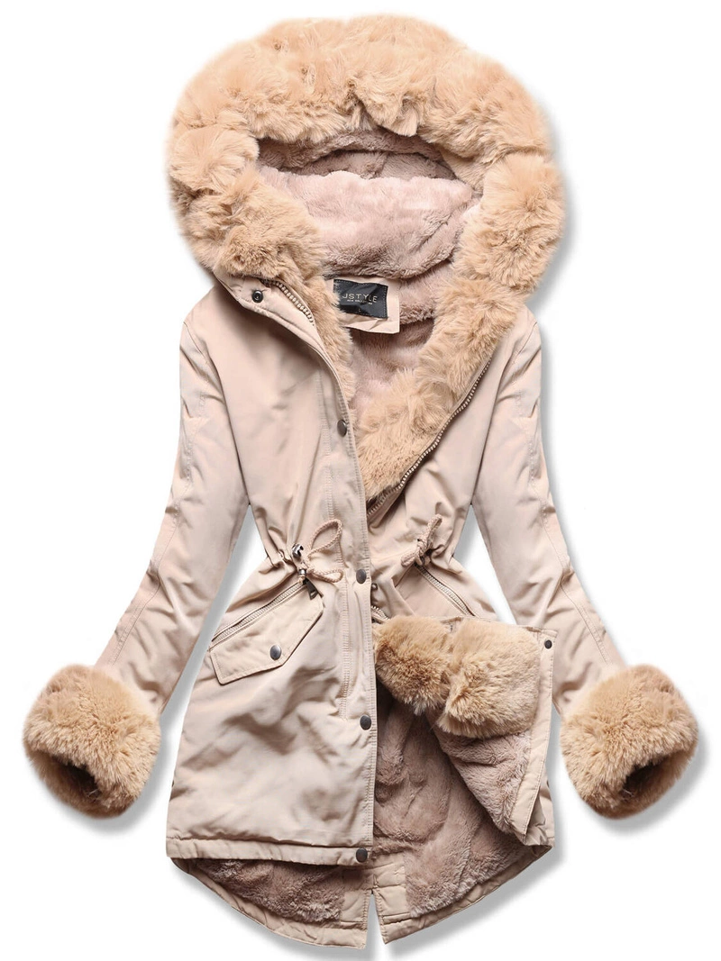 Beżowa przejściowa kurtka ze wstawkami i kapturem PASSION